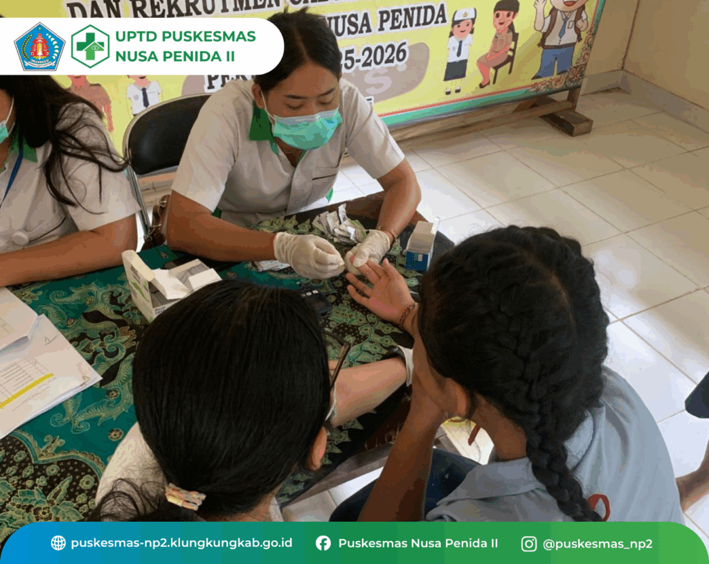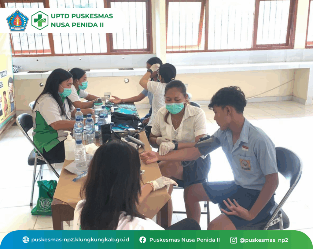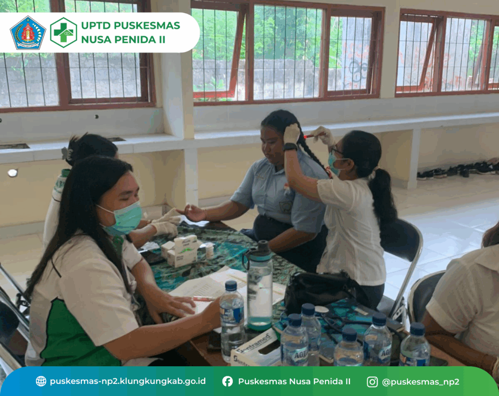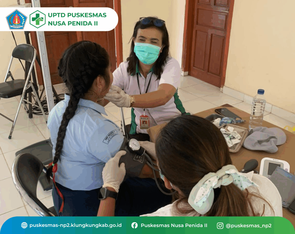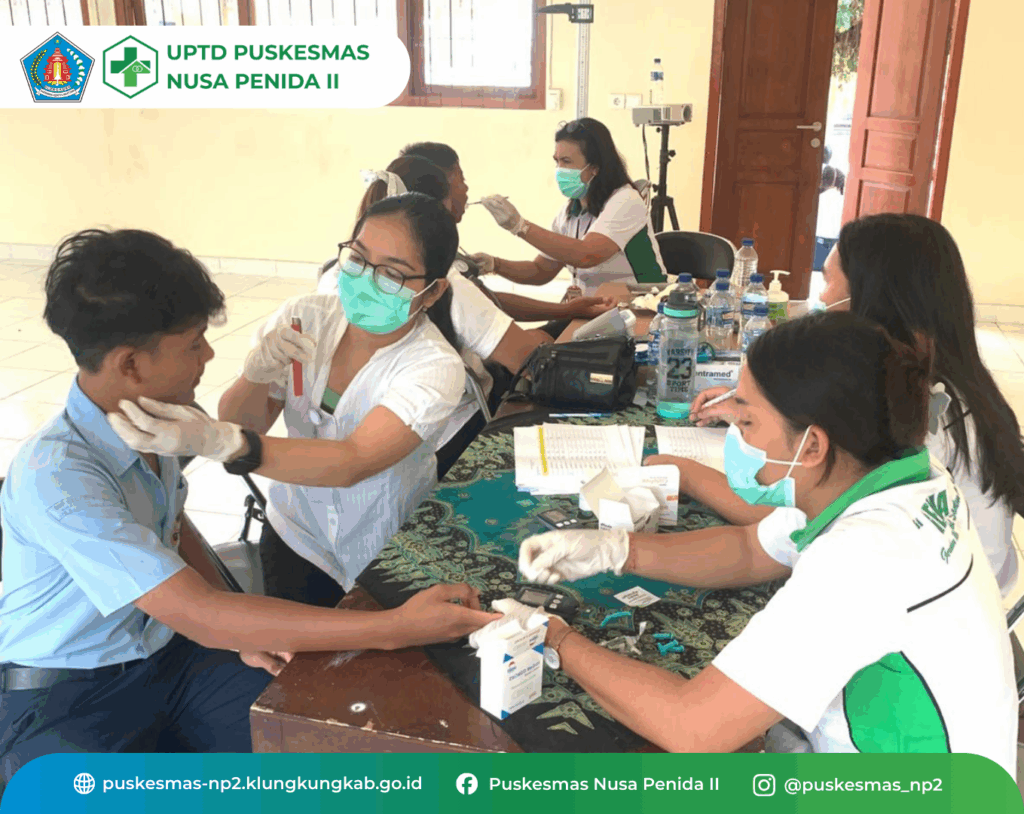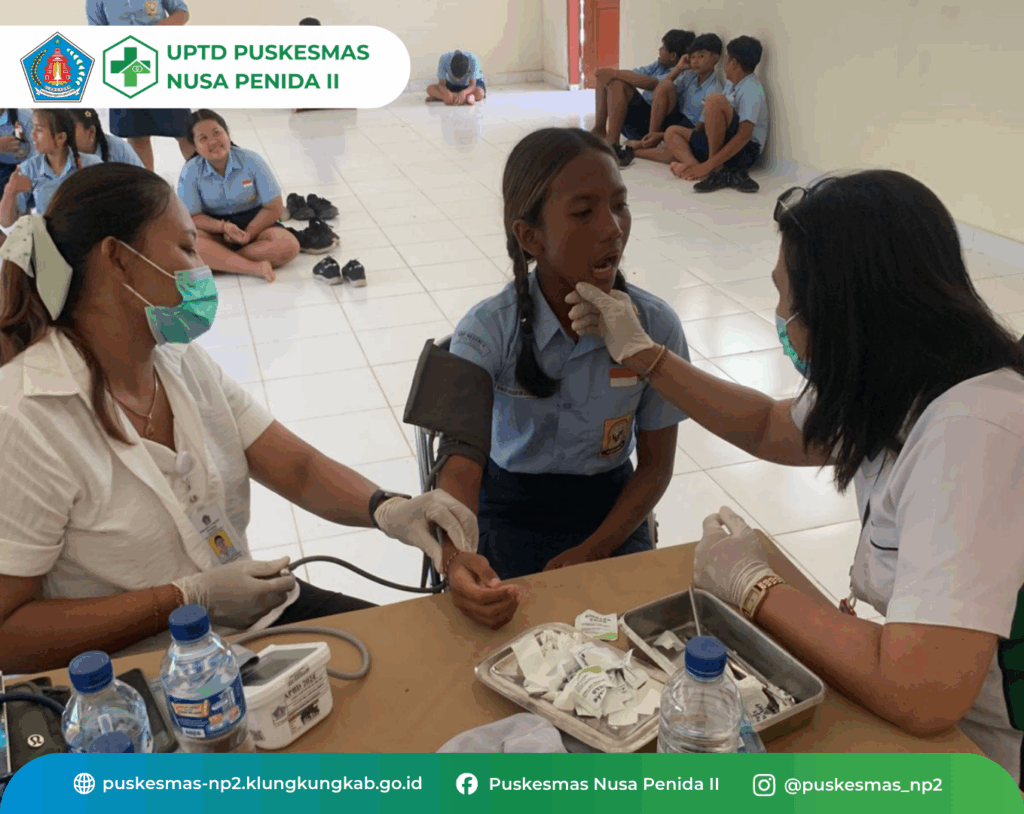 Kegiatan CKG Sekolah hari ini 1 Oktober 2025, di SMPN 4 Nusa Penida dengan jumlah anak yang diperiksa 143 orang. Kegiatan berjalan lancar dan siswa dengan tanggap mengikuti kegiatan pemeriksaan secara bergantian sesuai daftar nama siswa yang dipanggil. Kegiatan ini adalah salah satu Program dari Kemenkes dan bertujuan Menuju Indonesia Sehat![]()