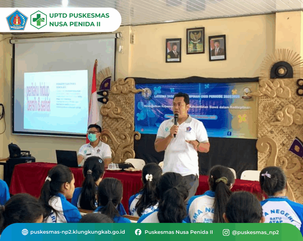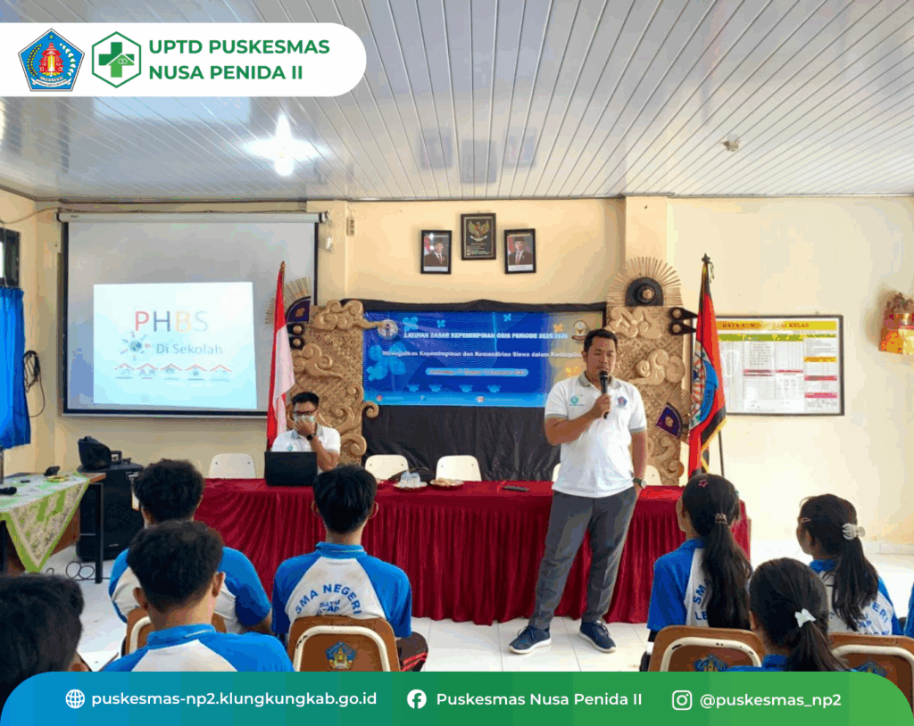 Penyuluhan Perilaku Hidup Bersih dan Sehat (PHBS) di sekolah Dalam rangka pelatihan kepemimpinan calon pengurus OSIS SMAN 1 Atap Lembongan, mengisi tentang materi sekolah sehat.